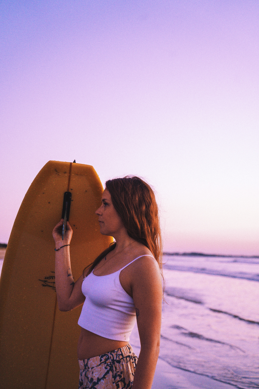 Mon longboard jaune sans hésiter. Le longboard c’est un style de surf qui permet d’être plus relax, de prendre encore plus le temps, et de partir à peu près sur tout même quand il y a 30 cm!