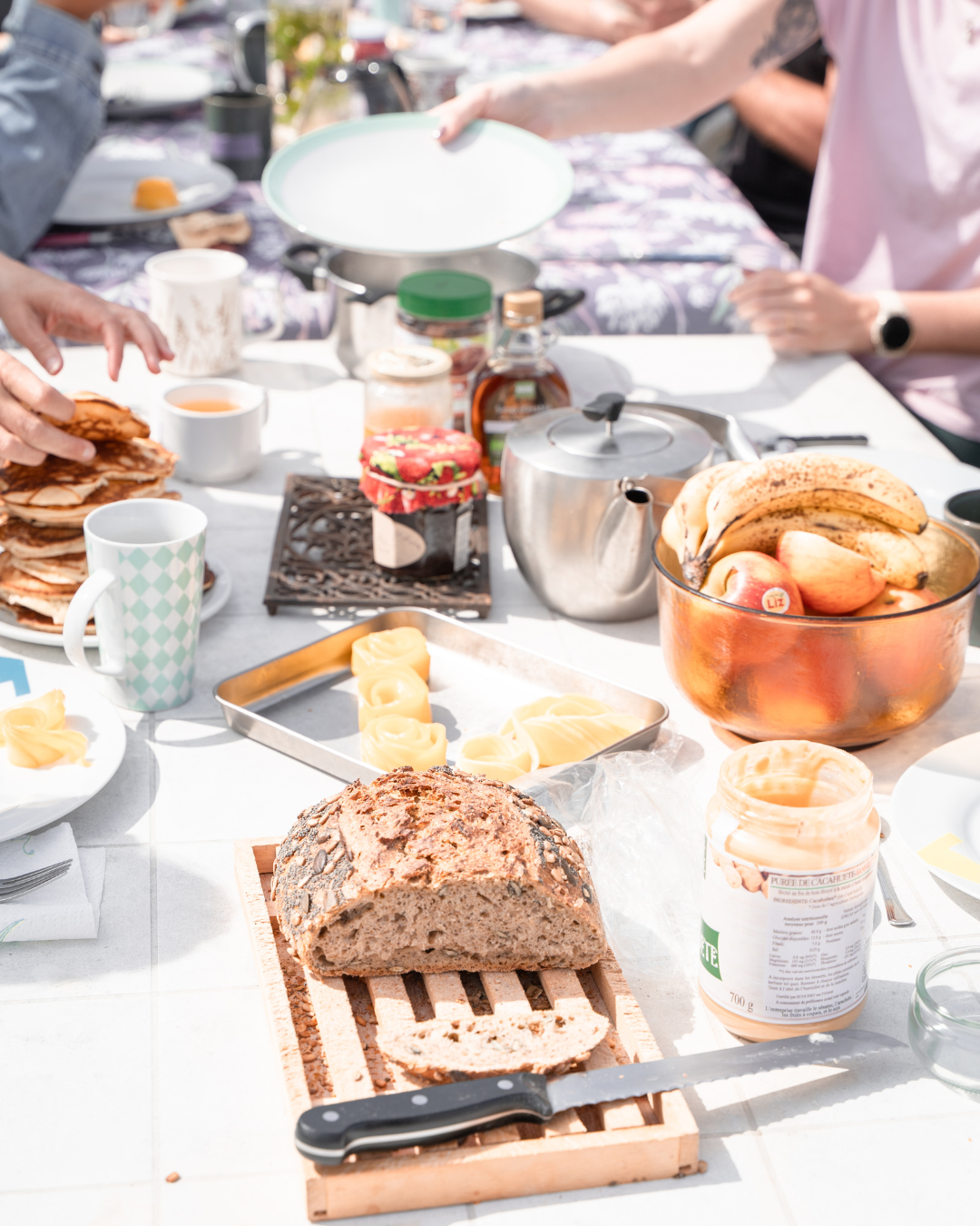Le matin, un brunch généreux est servi entre la séance de yoga et le cours de surf, pour nourrir le corps et donner de l’énergie avant d’aller à l’eau.